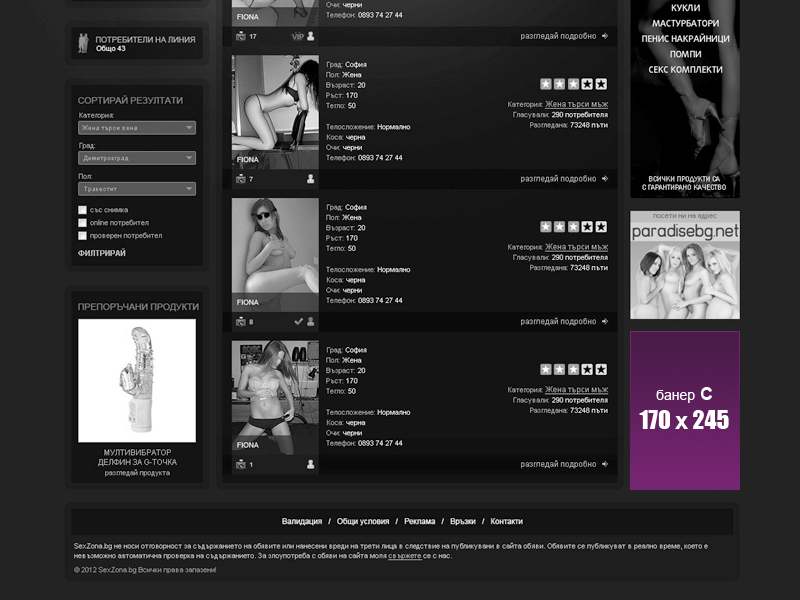admin@sexzona.bg. Всички договорени суми се заплащат авансово, преди старта на рекламната кампания. При неспазване на сроковете